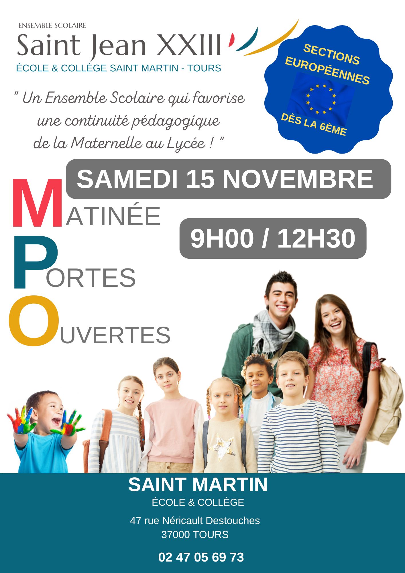 Notre matinée portes ouvertes se déroulera le samedi 15 novembre 2025 de 9h00 à 12h30