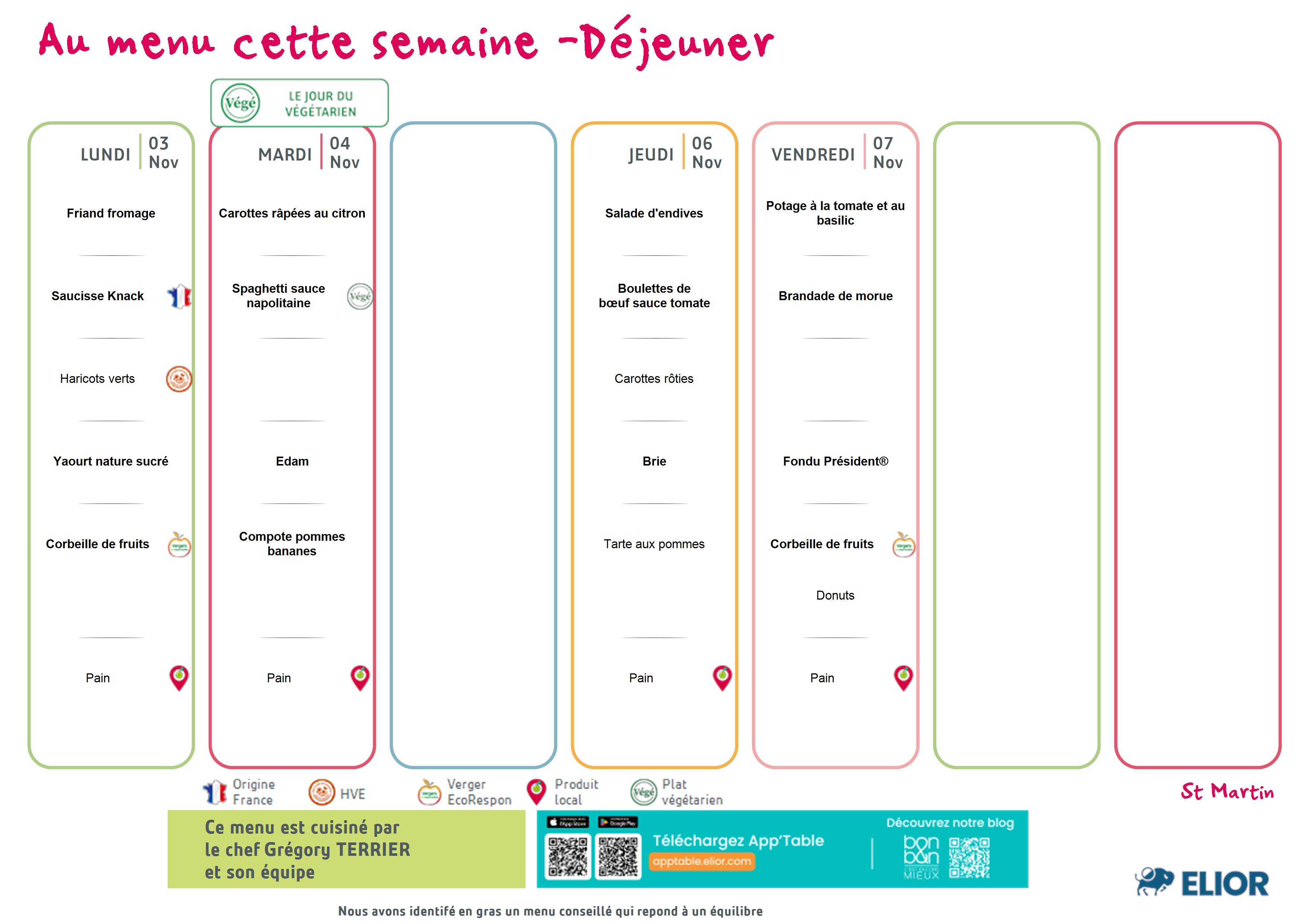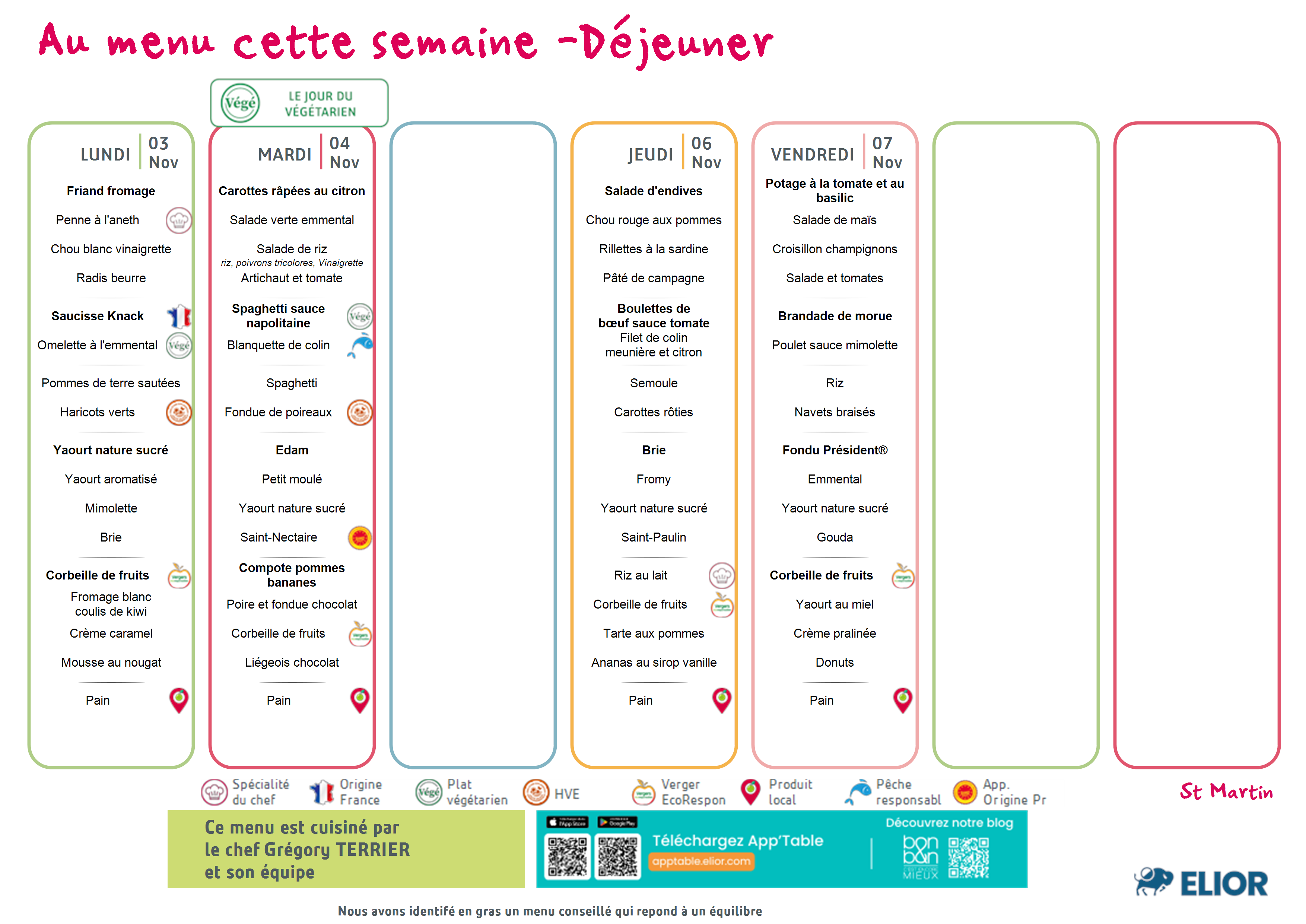Vous pouvez retrouver les menus hebdomadaires proposés à vos enfants.